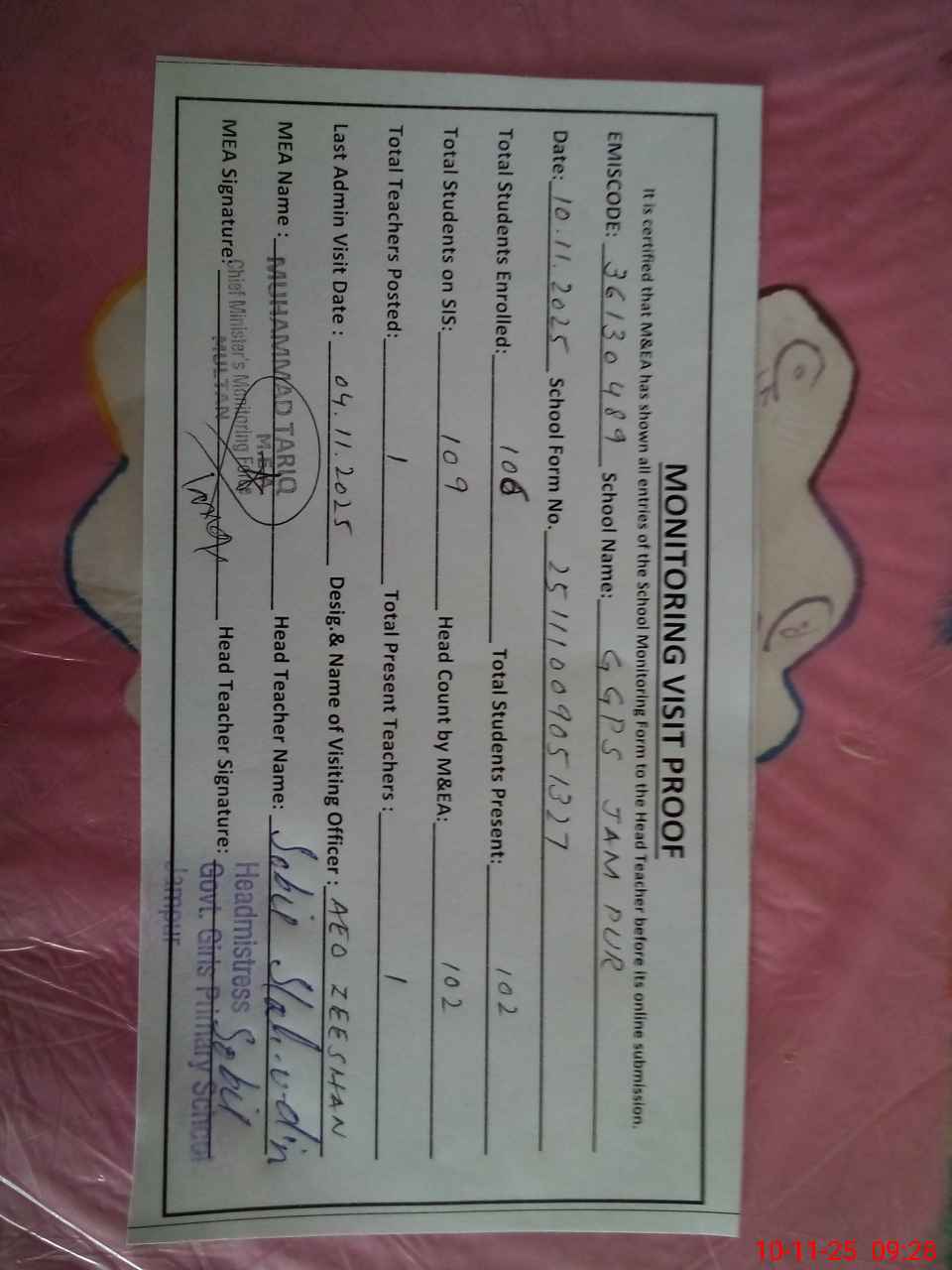 | EMIS Code: 36130489 | Name of School: GGPS JAM PUR | |||