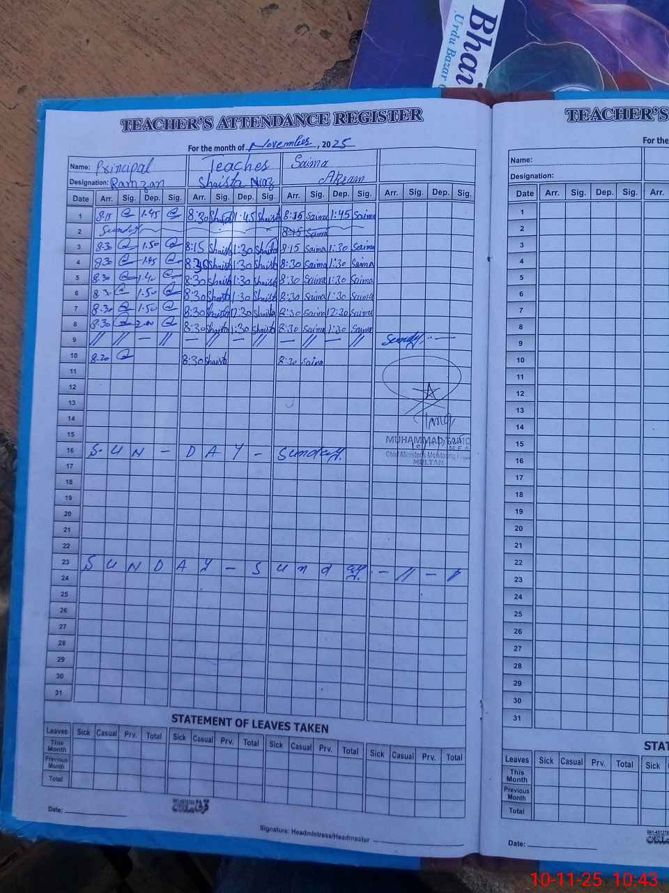 | Attendance Register | Head Teacher | MEA with School | Visit Proof |
