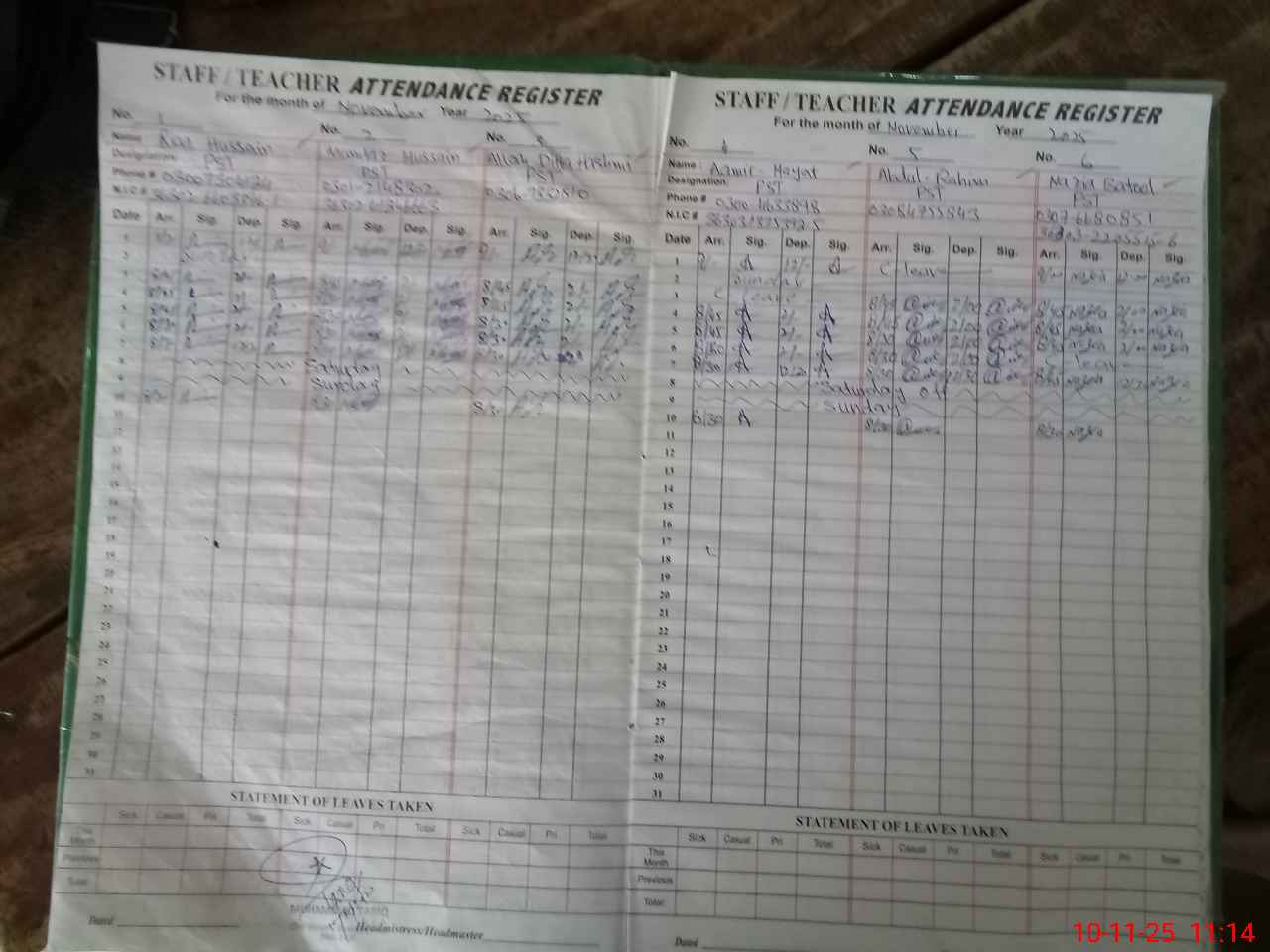 | Name: Aa**** Ha**** Designation: (School Headmaster's/Headmistress's) PST/ Phone/Cell Number: 03**** |