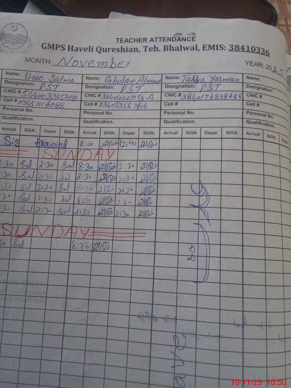 | Name: UM**** SA**** Designation: (School Headmaster's/Headmistress's) PST Phone/Cell Number: 03**** |