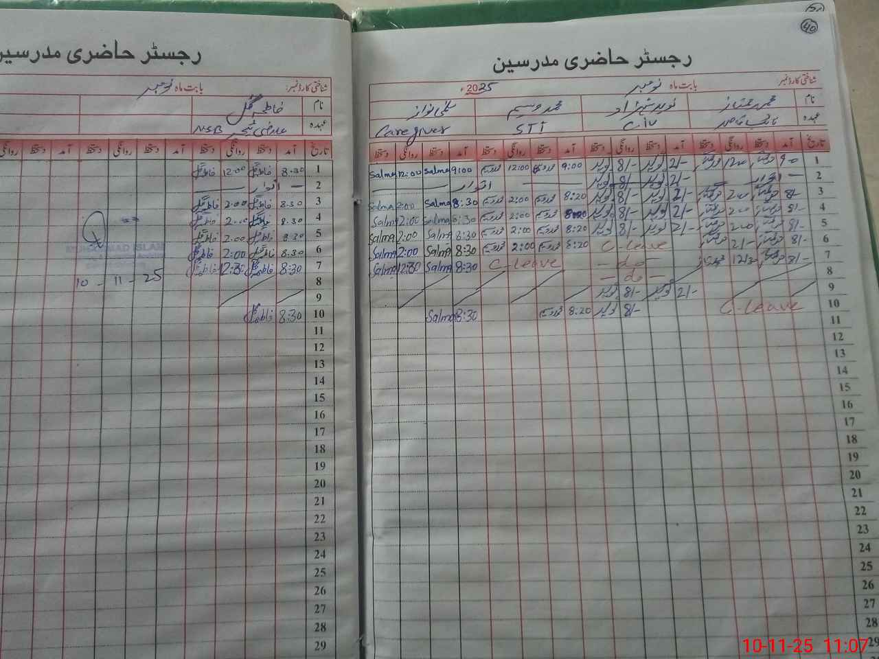 | CNIC | Full Name | Designation | R/C | Absence During Last Calender Month |