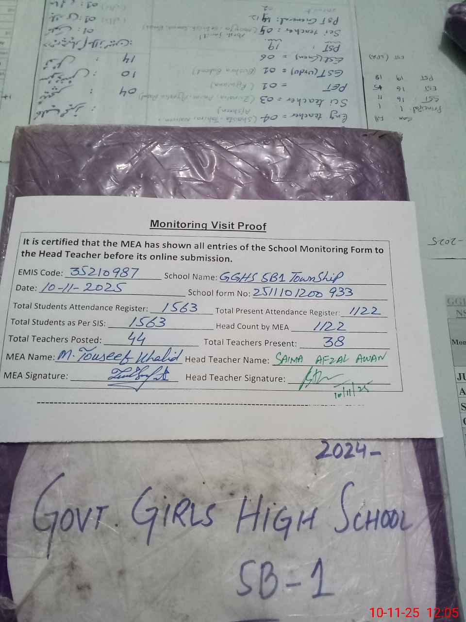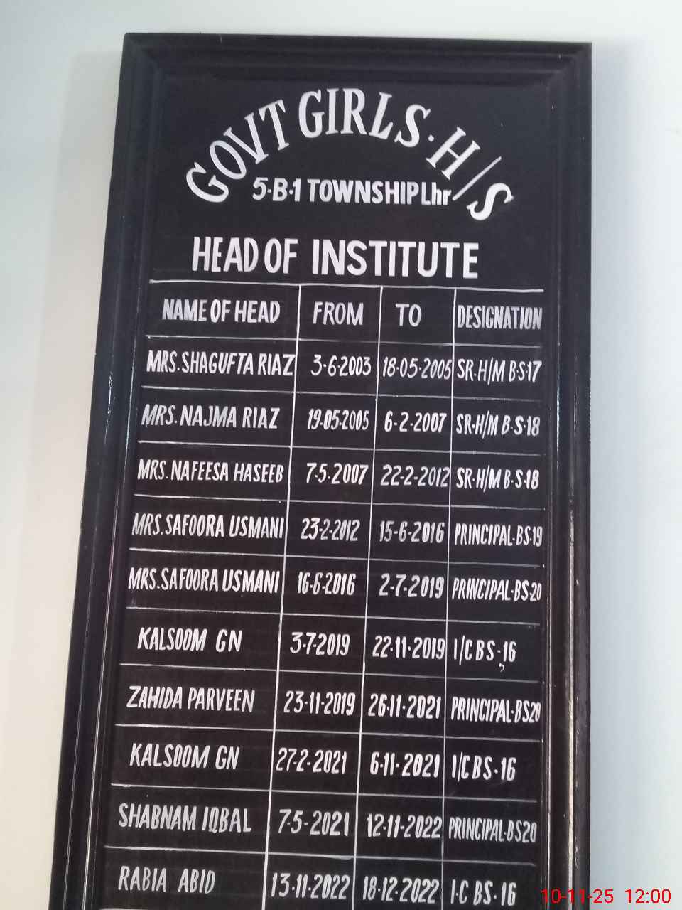 | EMIS Code: 35210987 | Name of School: GGHS 5B-1 TOWNSHIP, LAHORE | |||