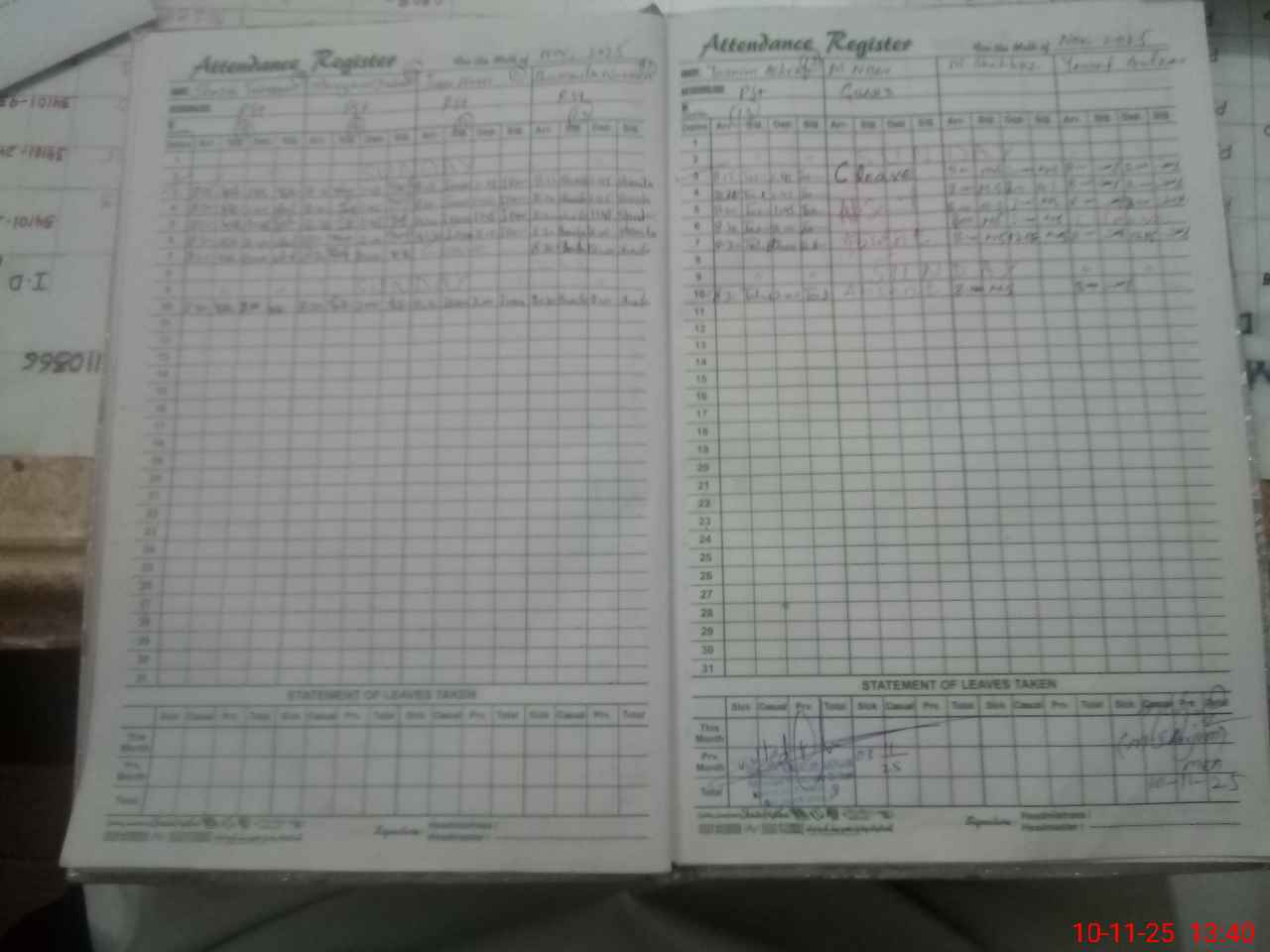 | Leave | Duty | Absent | Maternity | Medical | Ex- Pak |