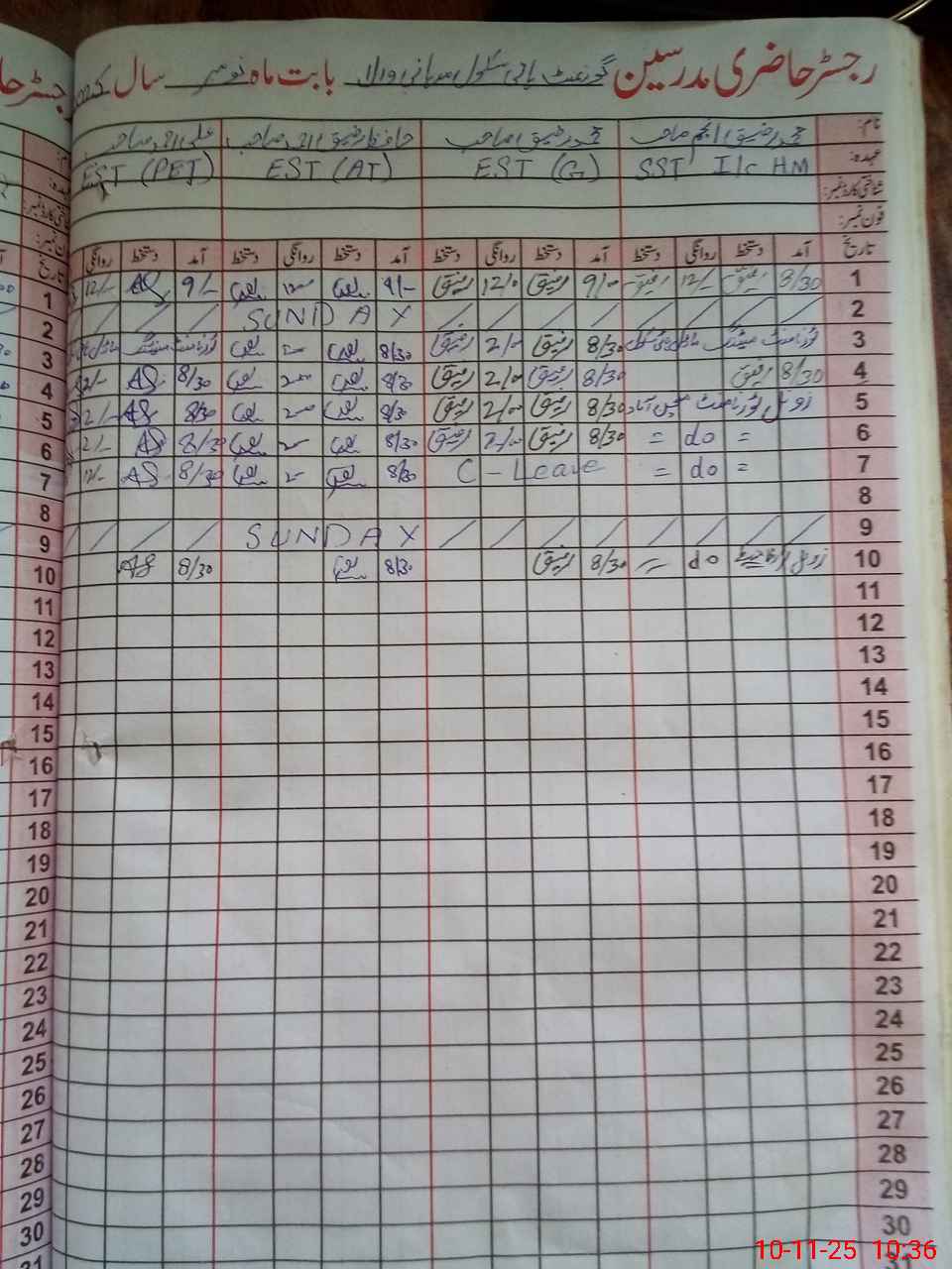 | 31**** | Kh**** Hu**** | CIV | 0 | 0 | 31 | 0 | 0 | 0 | 0 | 0 | 0 | Absent (Un-Authorized) | |