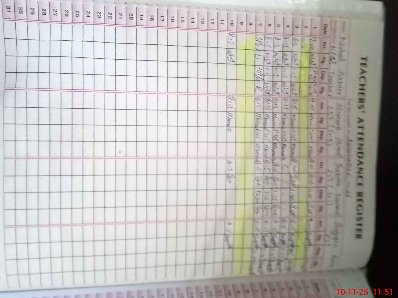 | CNIC | Full Name | Designation | R/C | Absence During Last Calender Month |