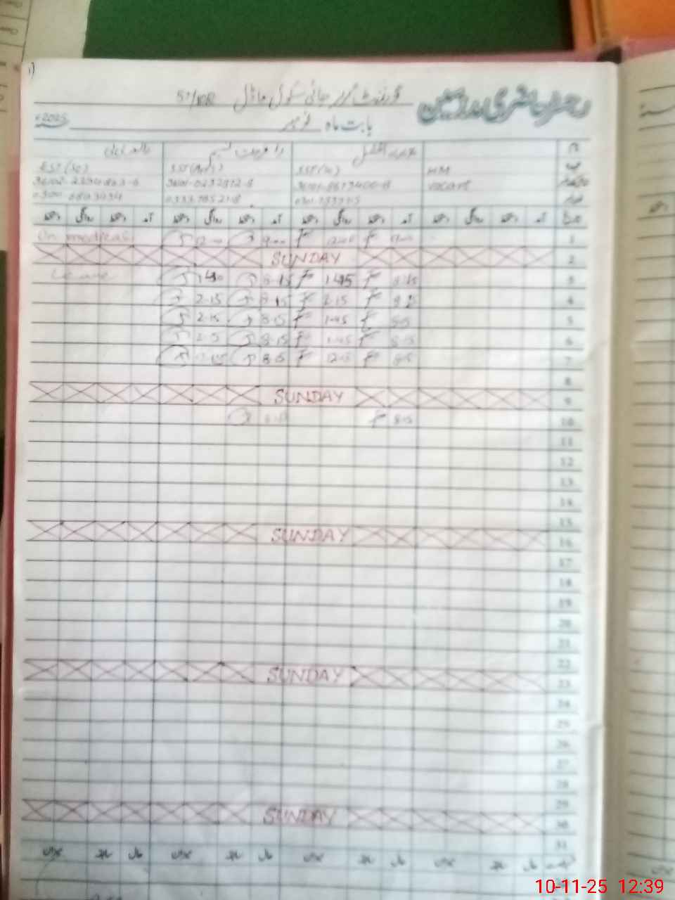 | CNIC | Full Name | Designation | R/C | Absence During Last Calender Month |