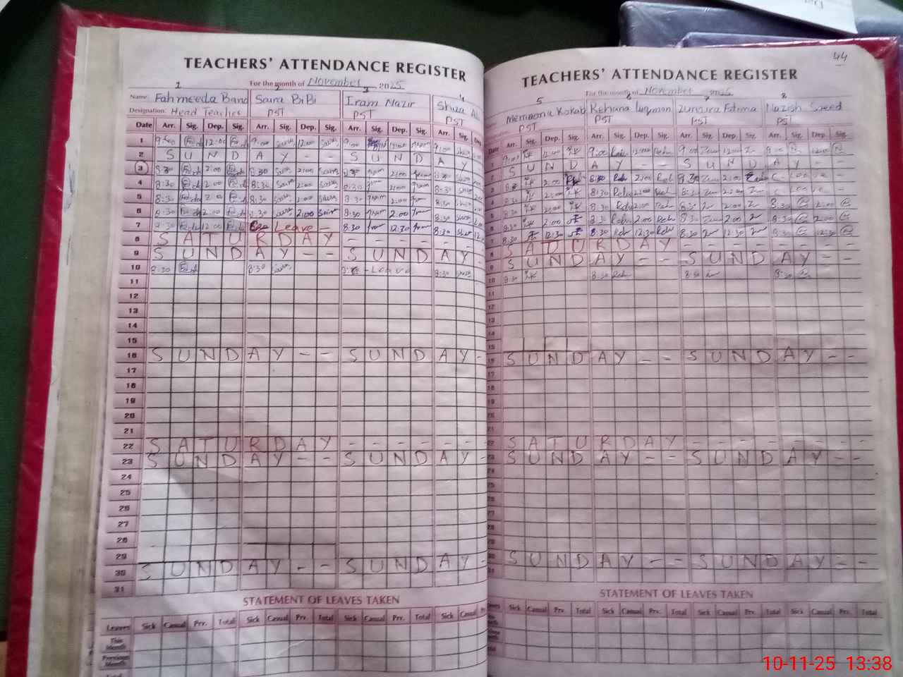 | Leave | Duty | Absent | Maternity | Medical | Ex- Pak |