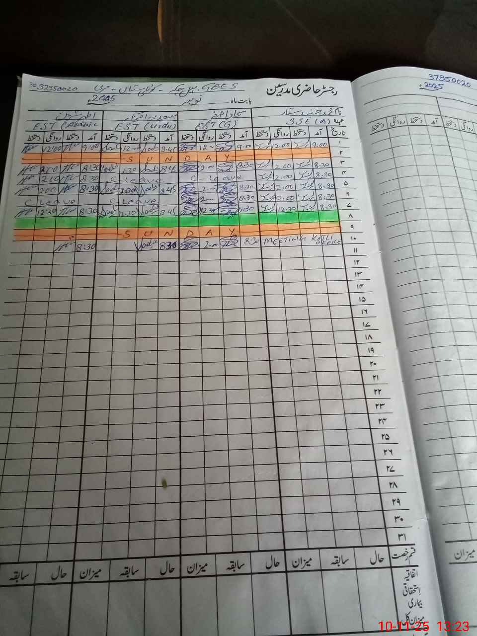 | CNIC | Full Name | Designation | R/C | Absence During Last Calender Month |