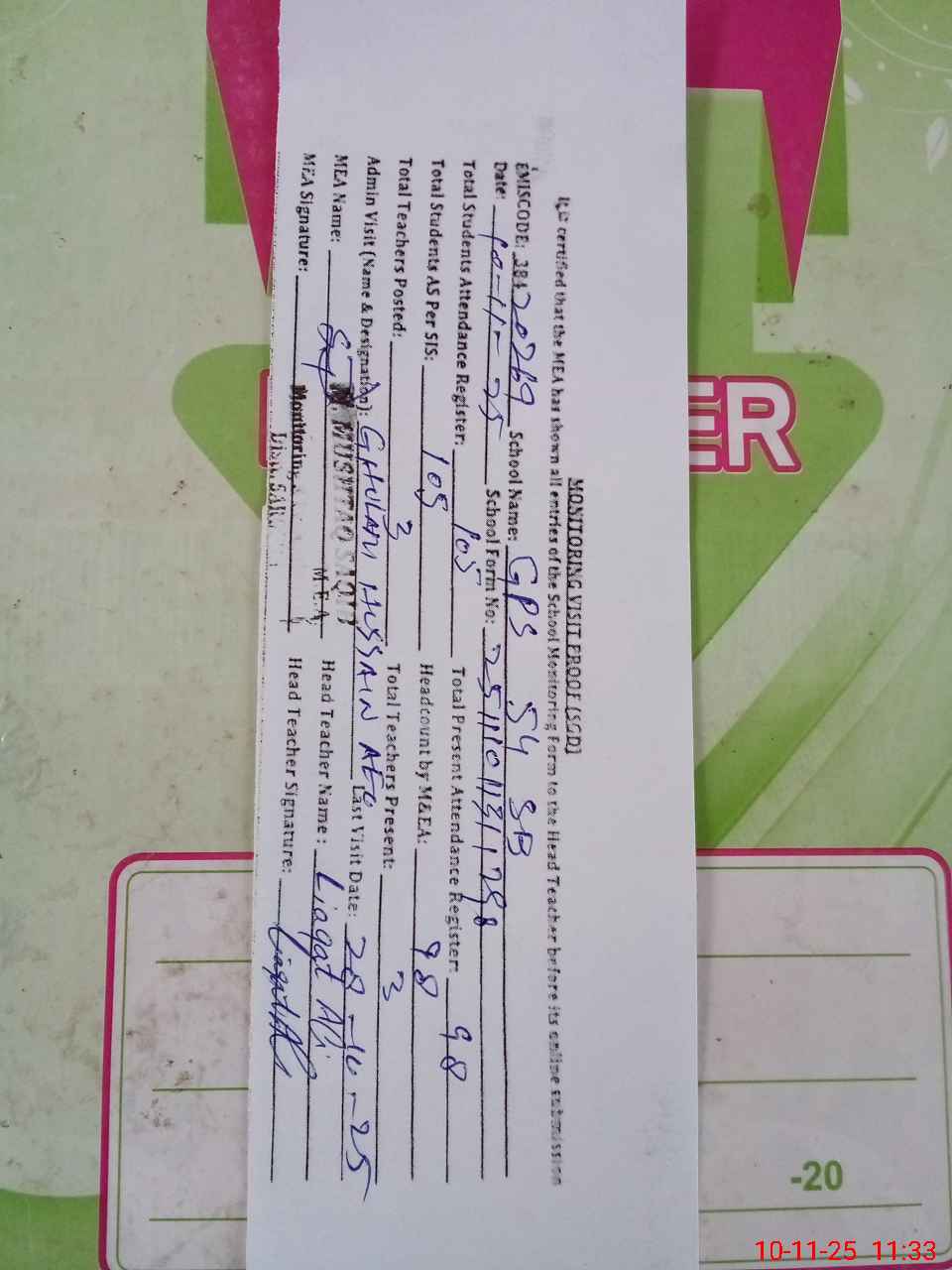 | EMIS Code: 38420269 | Name of School: GPS CHAK NO.54 SB | |||