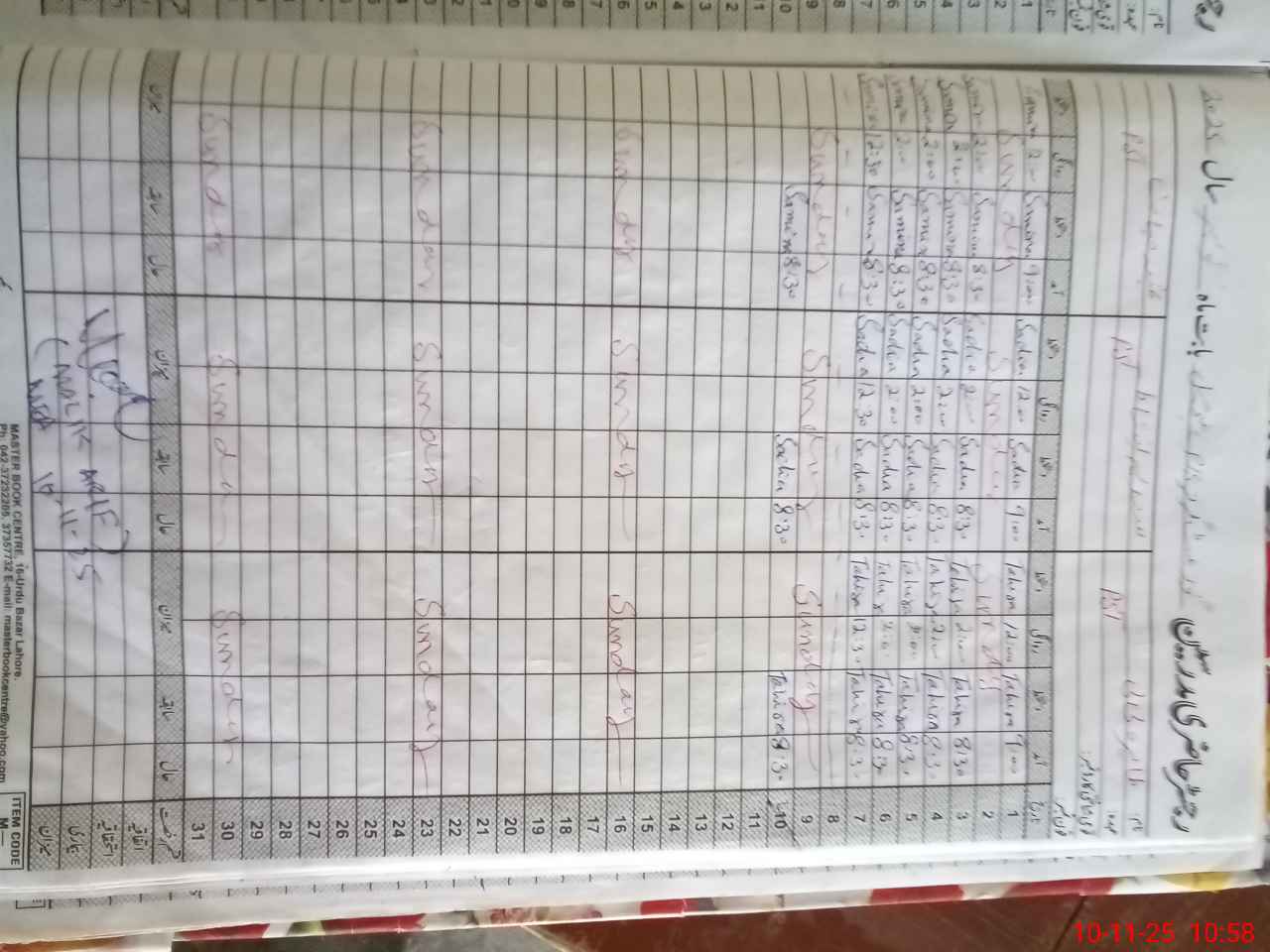 | CNIC | Full Name | Designation | R/C | Absence During Last Calender Month |