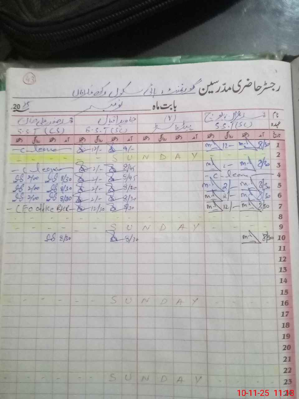 | CNIC | Full Name | Designation | R/C | Absence During Last Calender Month |
