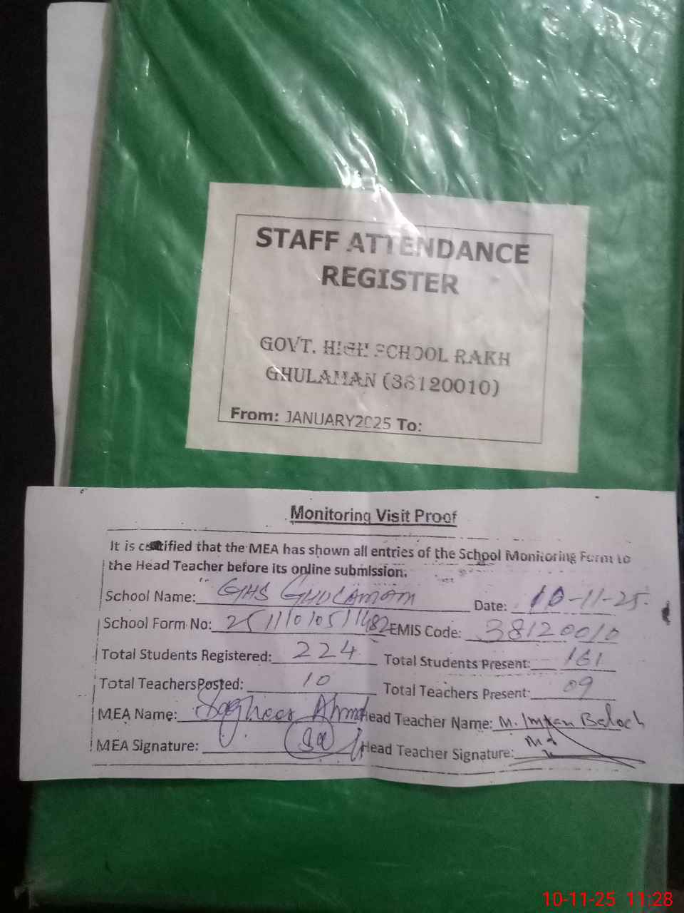 | Attendance Register | Head Teacher | MEA with School | Visit Proof |