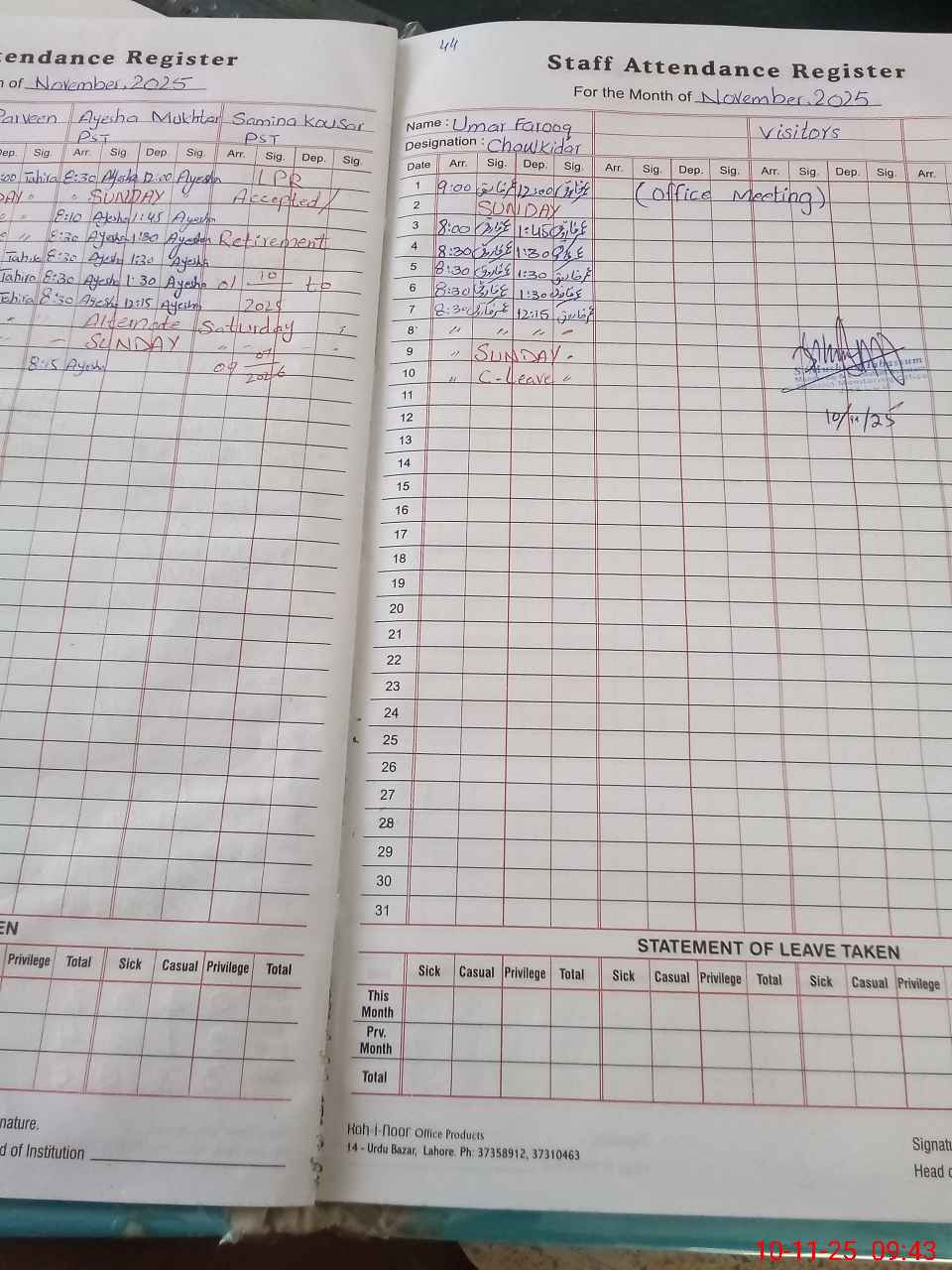 | 37**** | Um**** Fa**** | CHOWKIDAR | Regular | 2 | 0 | 0 | 0 | 0 | 0 | 0 | 0 | 2 | Casual |
