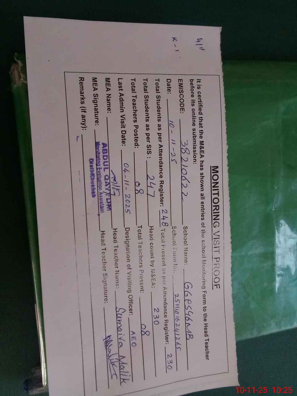 | Remarks (Use Separate Page if Required): Last visit by AEO on 4th nov 2025 | |||||