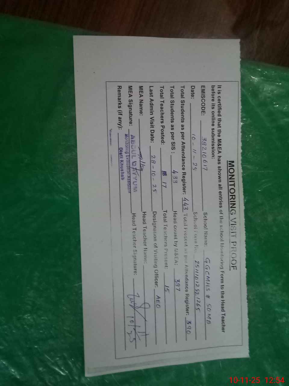 | EMIS Code: 38210617 | Name of School: GGCMHS CHAK 50 MB | |||