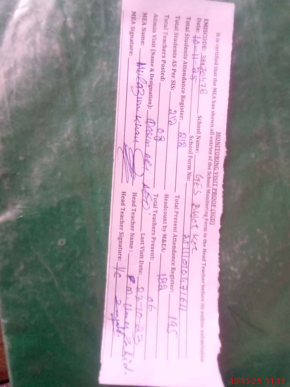 | EMIS Code: 38470478 | Name of School: GES BHOJI KOT | |||
