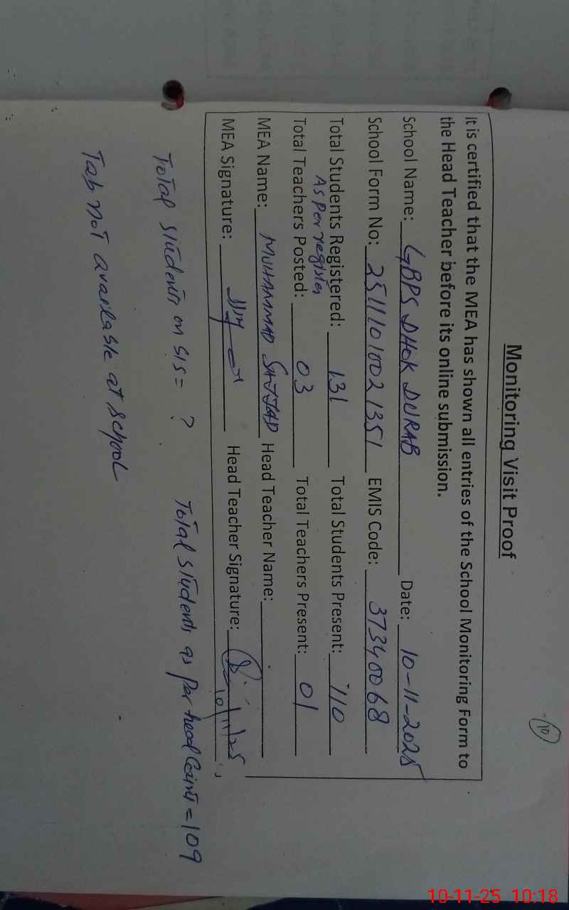 | EMIS Code: 37340068 | Name of School: GPS DHOKE DURAB | |||