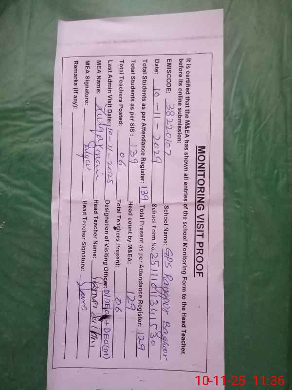 | EMIS Code: 38220107 | Name of School: GPS RANGPUR BAGHOOR | |||