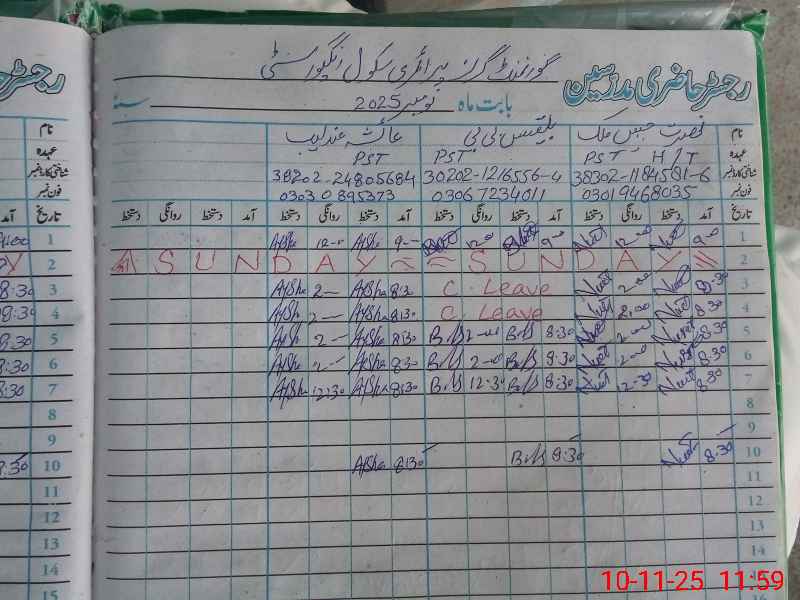 | Name: NU**** JA**** Ma**** Designation: (School Headmaster's/Headmistress's) PST Phone/Cell Number: 03**** |