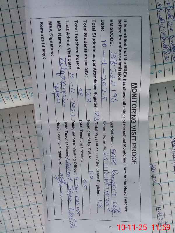 | EMIS Code: 38220196 | Name of School: GGPS RANGPUR CITY | |||