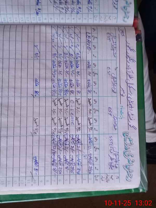 | CNIC | Full Name | Designation | R/C | Absence During Last Calender Month |