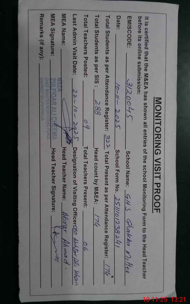 | EMIS Code: 34120045 | Name of School: GHS GHAKKA MITTER | |||