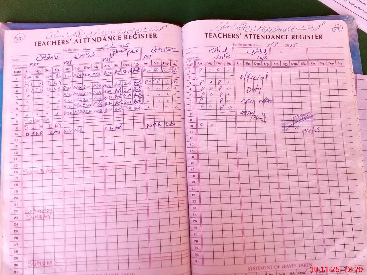 | Attendance Register | Head Teacher | MEA with School | Visit Proof |