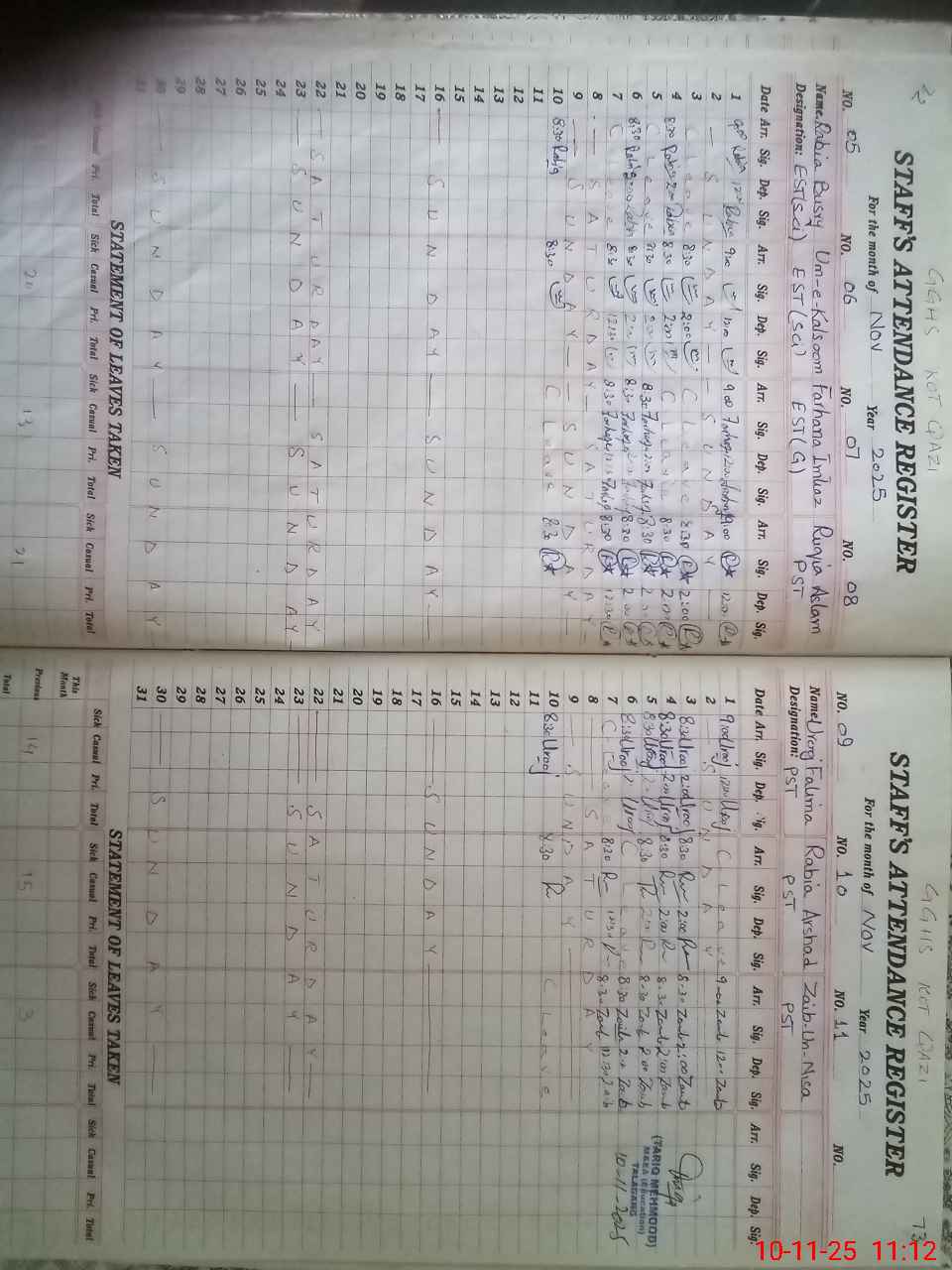 | CNIC | Full Name | Designation | R/C | Absence During Last Calender Month |