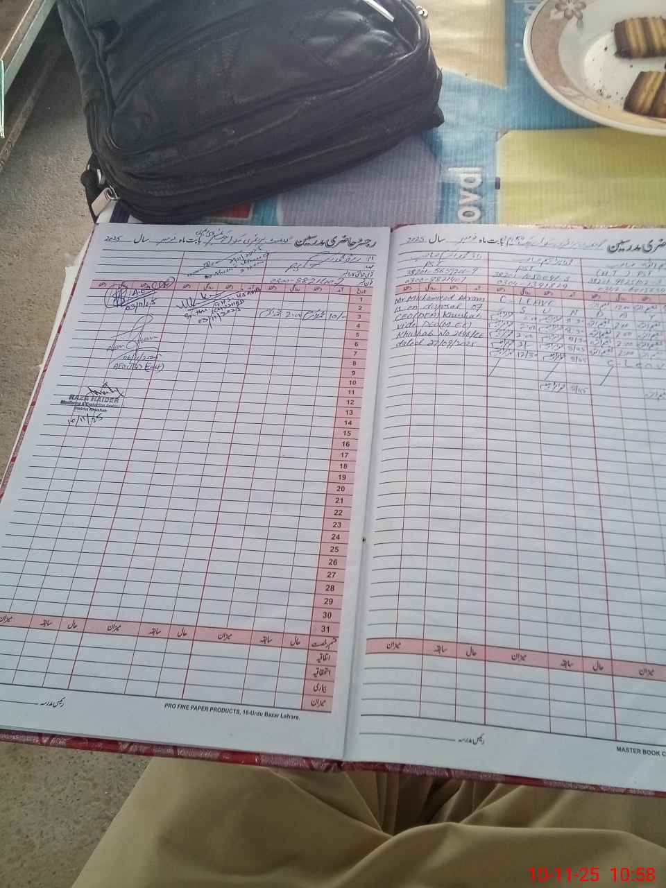 | CNIC | Full Name | Designation | R/C | Absence During Last Calender Month |