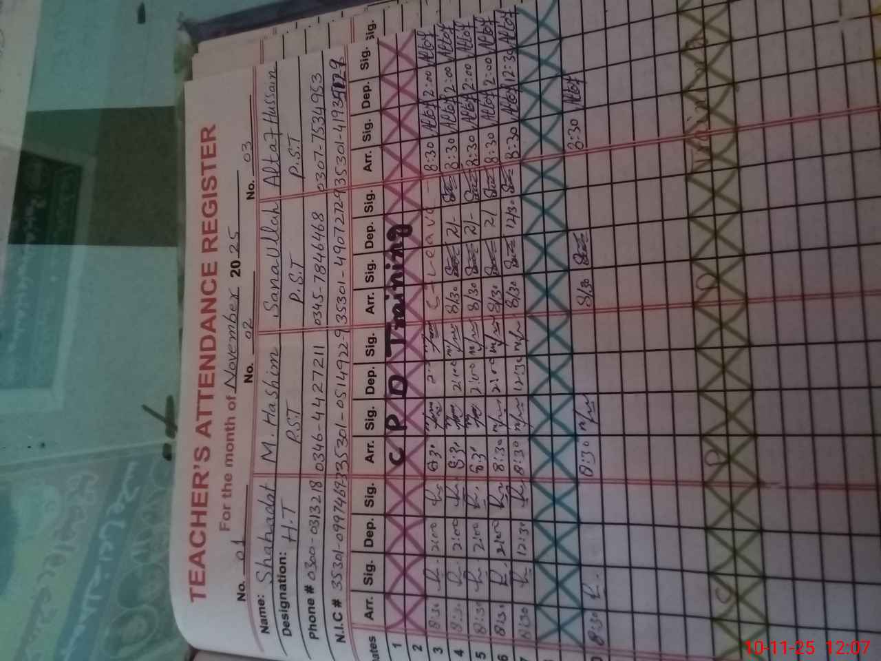 | Name: Sh**** Al**** Designation: (School Headmaster's/Headmistress's) PST Phone/Cell Number: 03**** |