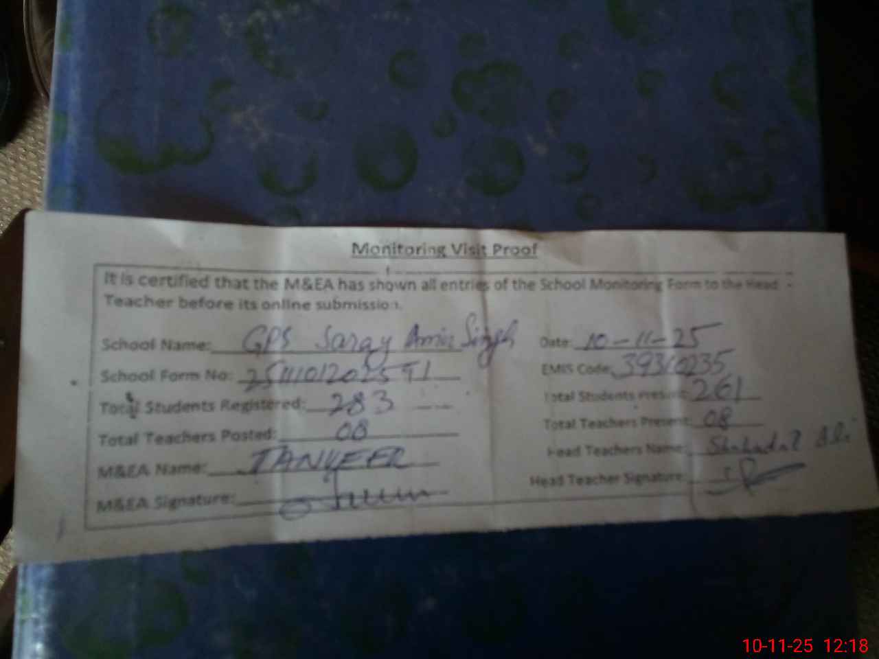 | EMIS Code: 39310235 | Name of School: GPS SARAY AMIR SINGH | |||