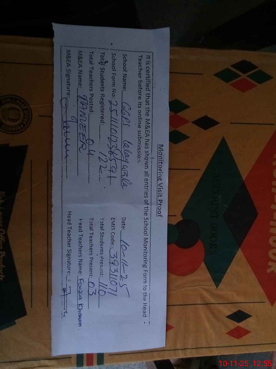 | EMIS Code: 39311071 | Name of School: GGPS LALAY WALA | |||