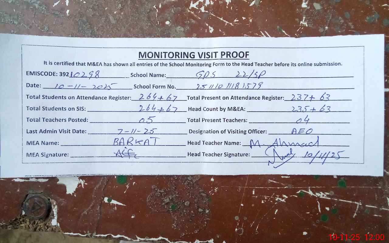 | EMIS Code: 39210298 | Name of School: GPS 22 SP | |||