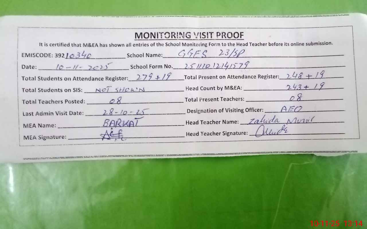 | EMIS Code: 39210340 | Name of School: GGES 23 SP | |||
