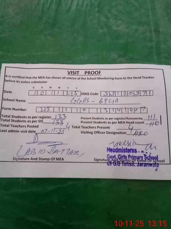| EMIS Code: 33120371 | Name of School: GGPS CHAK 69 GB JARANWALA | |||