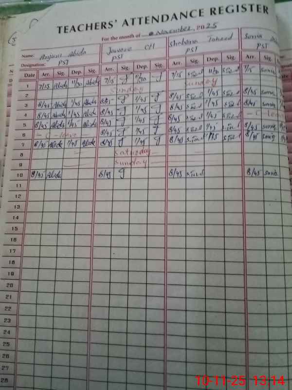| CNIC | Full Name | Designation | R/C | Absence During Last Calender Month |