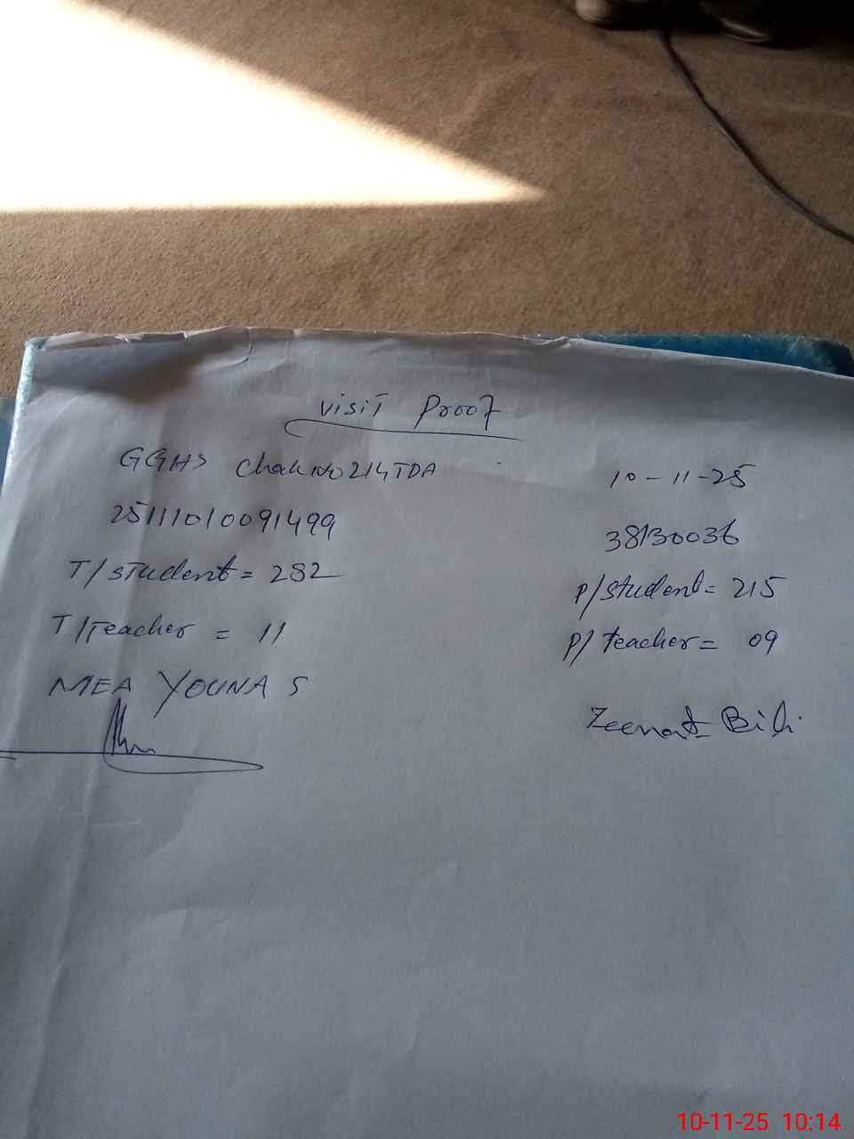 | Remarks (Use Separate Page if Required): Munir aulakh DEO date of visit 18 Feb 2025 as told by head teacher Last year attendence register was under lock | |||||