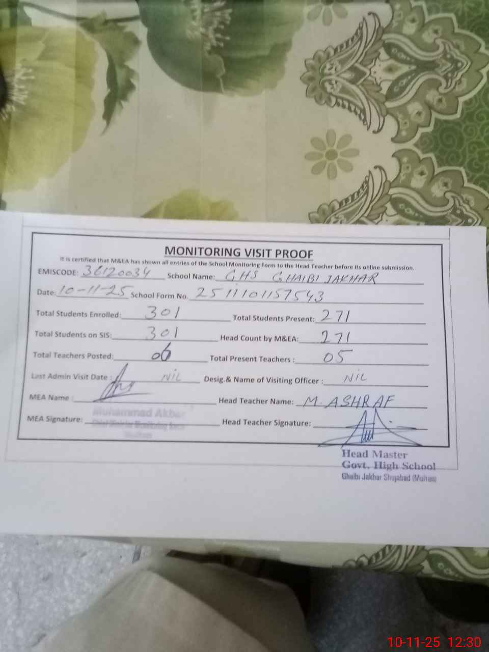 | EMIS Code: 36120034 | Name of School: GHS GHABI JHAKKAR SHUJABAD | |||