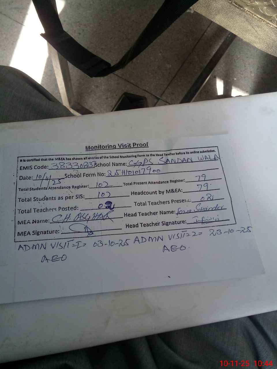 | EMIS Code: 38330837 | Name of School: GGPS SANDAN WALA | |||