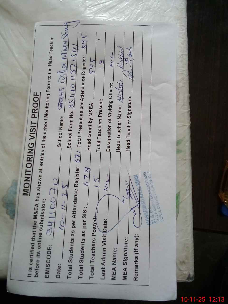 | EMIS Code: 34110070 | Name of School: GGHS QILA MIAN SINGH | |||