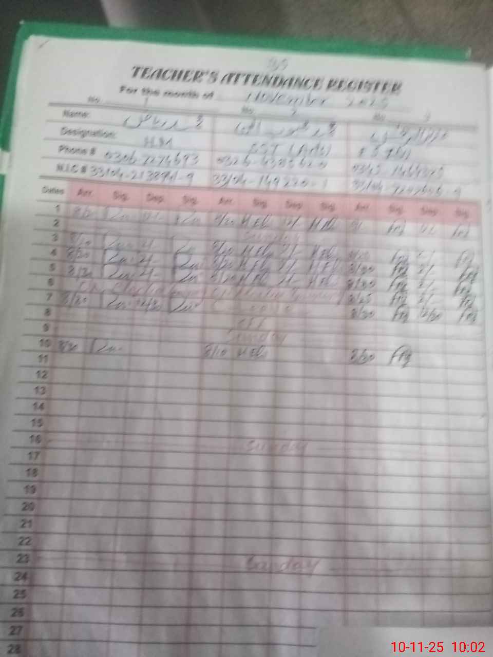 | Name: Me**** Il**** Ah**** Designation: (School Headmaster's/Headmistress's) SST (HM) Phone/Cell Number: 03**** |