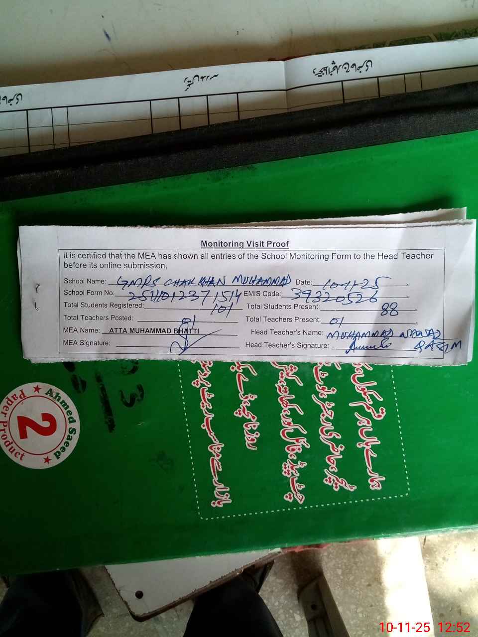 | EMIS Code: 39320526 | Name of School: GMPS CHAK KHAN MUHAMMAD | |||
