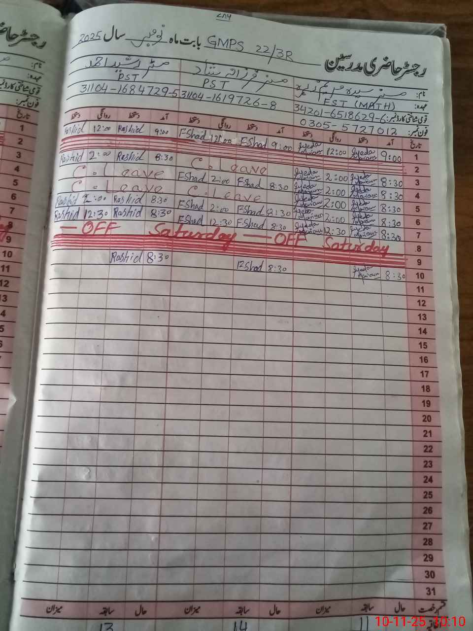 | CNIC | Full Name | Designation | R/C | Absence During Last Calender Month |