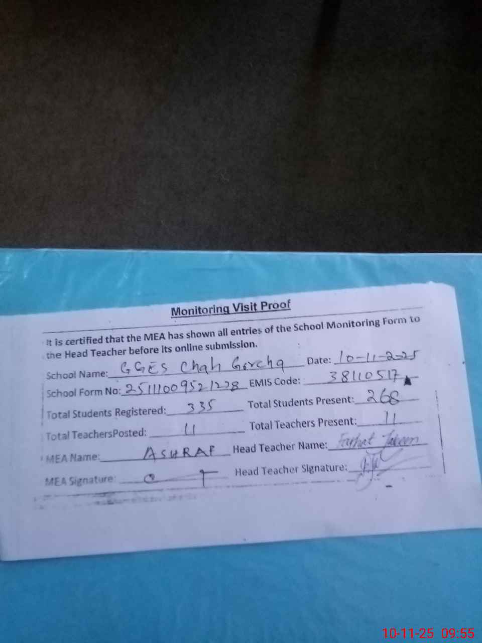 | EMIS Code: 38110517 | Name of School: GGES CHAH GHORCHA | |||