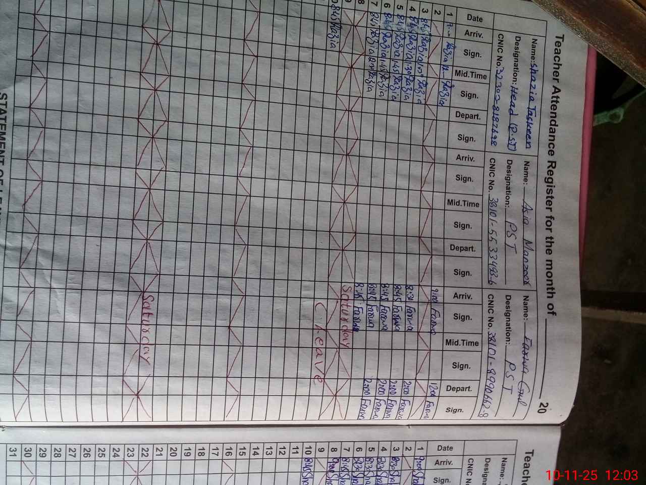 | Name: Sh**** Ta**** Fa**** Designation: (School Headmaster's/Headmistress's) PST Phone/Cell Number: 03**** |