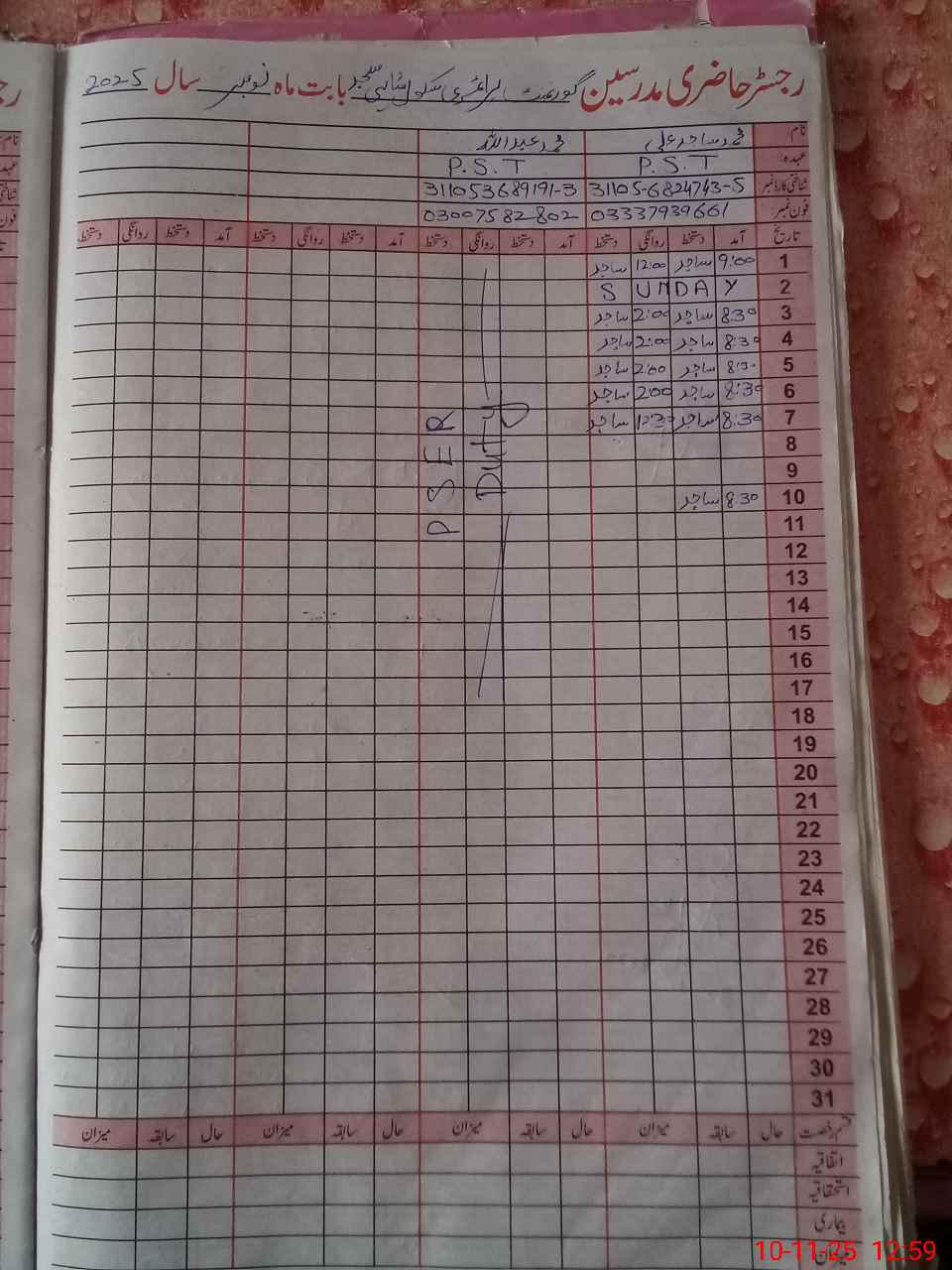 | Name: Mu**** Sa**** Al**** Designation: (School Headmaster's/Headmistress's) PST Phone/Cell Number: 03**** |