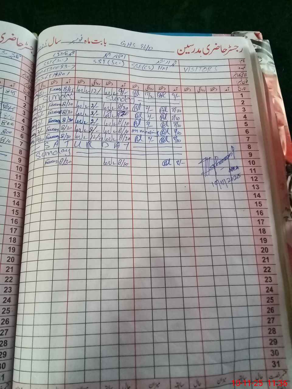 | CNIC | Full Name | Designation | R/C | Absence During Last Calender Month |