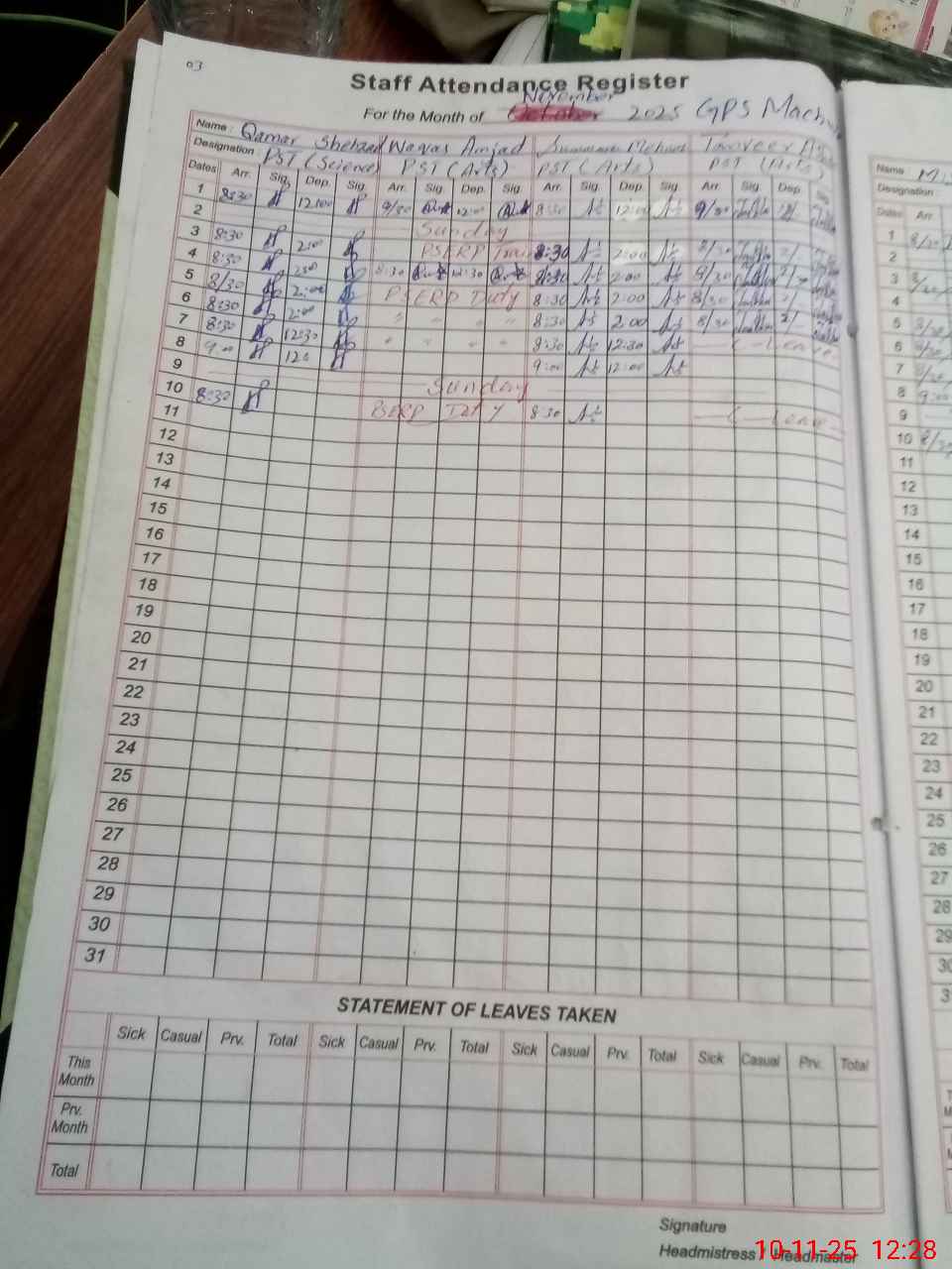 | Leave | Duty | Absent | Maternity | Medical | Ex- Pak |