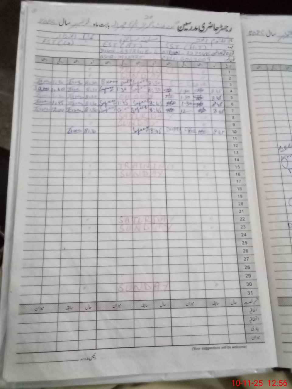 | CNIC | Full Name | Designation | R/C | Absence During Last Calender Month |
