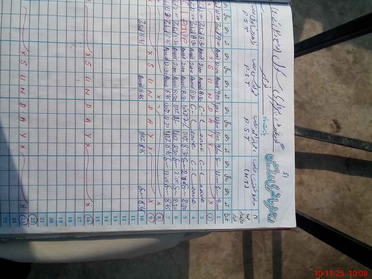 | CNIC | Full Name | Designation | R/C | Absence During Last Calender Month |
